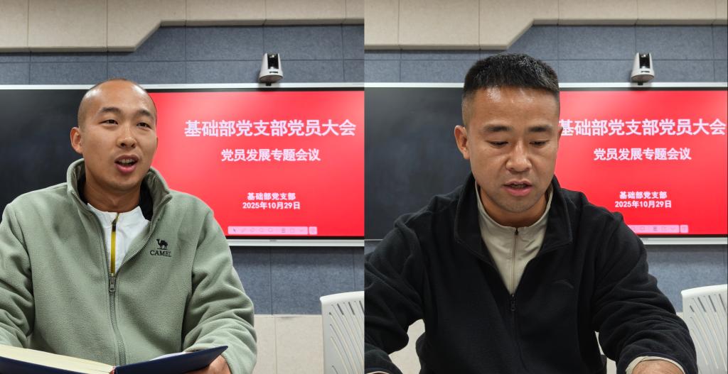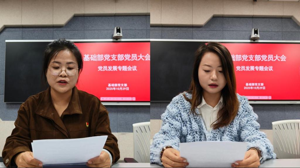 为进一步壮大和优化党的队伍,确保党员发展的规范性和严肃性,10月29日下午,基础部党支部在蟠龙校区506室召开预备党员接收大会暨预备党员转正大会,会议由支部书记李明主持,支部全体党员、发展对象、入党介绍人参会。