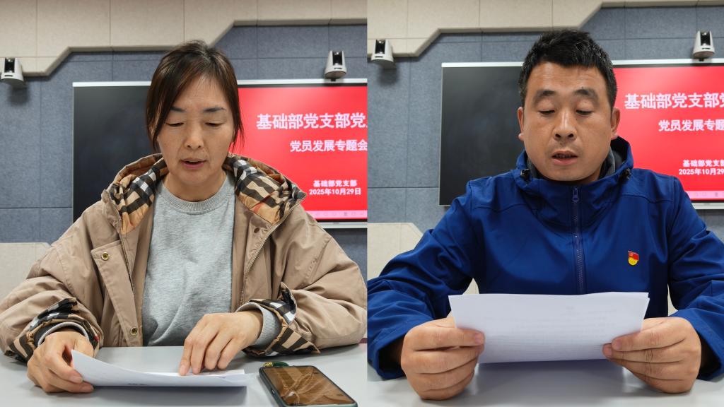随后,在预备党员接收环节,郝玮、李根旺两位申请人依次汇报发展期间个人表现,表达了加入党组织的坚定决心和为人民服务的崇高理想。培养联系人也分别介绍了两位申请人的入党动机、政治立场、思想觉悟、学习工作表现以及群众基础等方面的情况。经过无记名投票表决,大会一致同意接收郝玮、李根旺为中共预备党员。